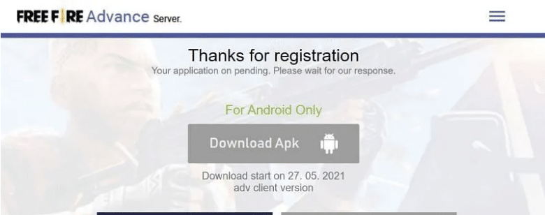 Tercer paso: Haz clic en descargar Apk (Download Apk). Con eso, ya tendremos descargado el archivo APK Free Fire OB28 Advance Server.